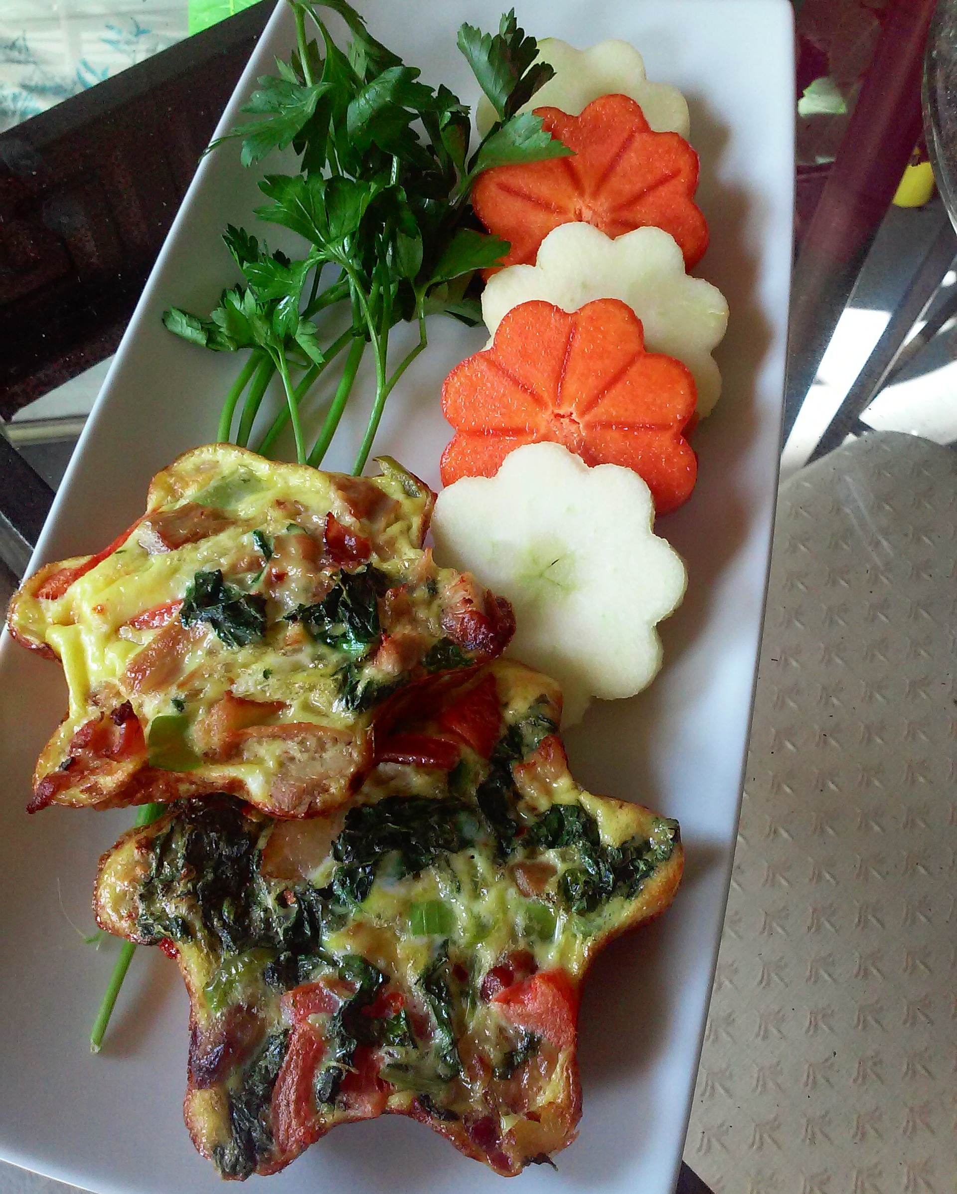 Having a fun and #healthylunch. Dusted off my #tacobowls and #fruitcutters and created #frittatas and #fruitart #Lunchtime y’all!! #amaranthleaves #turkey #bacon #peppers #persimmons #celery #tomatoes #eggs #grannysmithapples #yummy #protein #healthylife #healthychoices #healthyeating #eatingclean #eatyourgreens #eatinghealthy #delicious #homemade #fitfam #fitness #fitfight #instafitness #tacotuesday