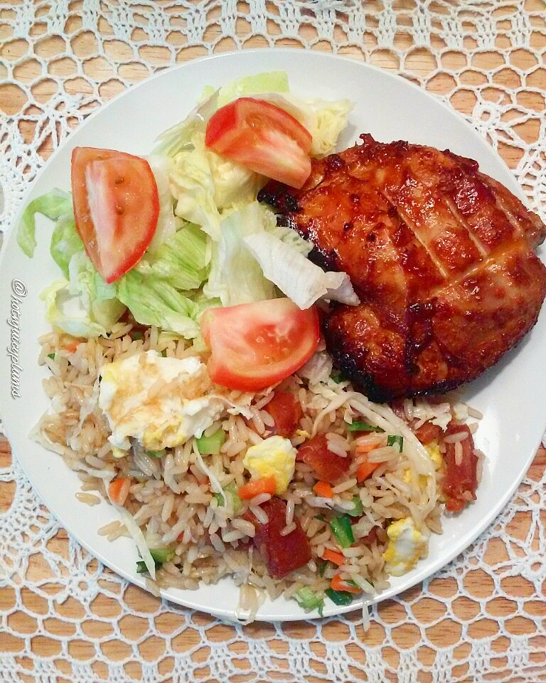 Loaded fried rice, BBQ chicken and salad 😄! TGIF