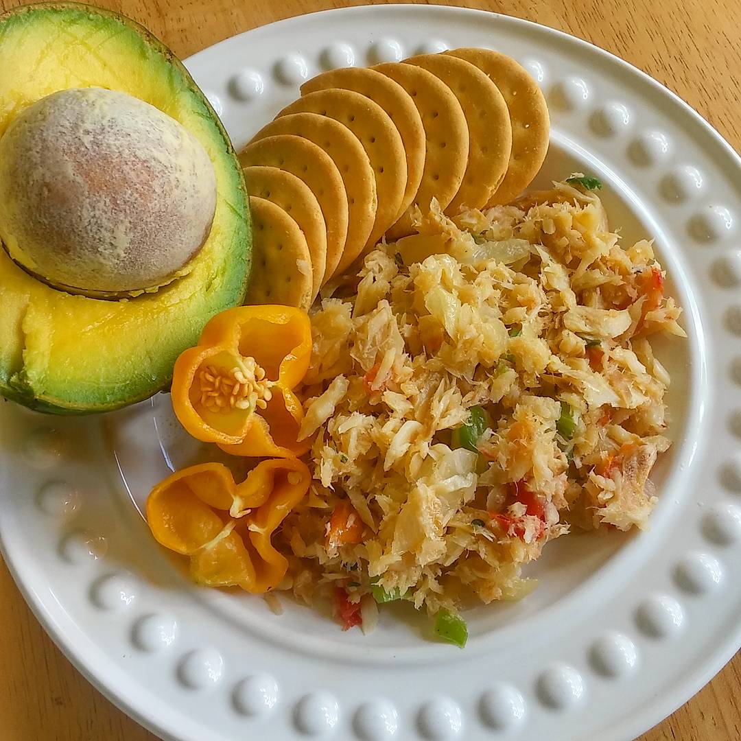 On the table tonight – #crix, #saltfishbuljol and #zaboca…#saltedcod, crackers and #avocado 😂😂😂…dinner is served
