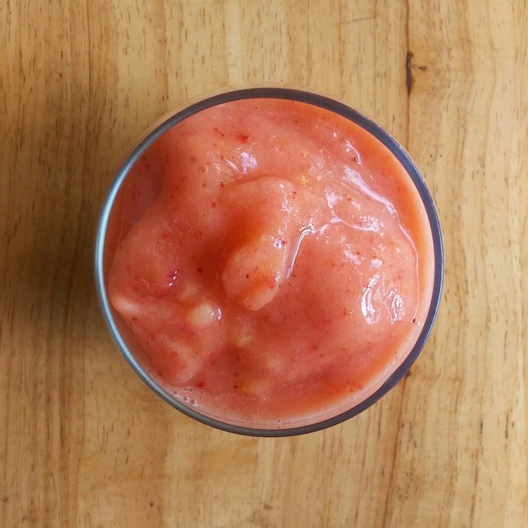 Celebrating Friday with a strawberry, peach and coconut smoothie….solo good! Good morning