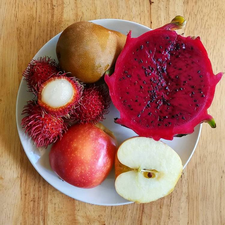 Another lovely morning, another lovely plate! Good morning everyone….the rambutans are exceptionally sweet!